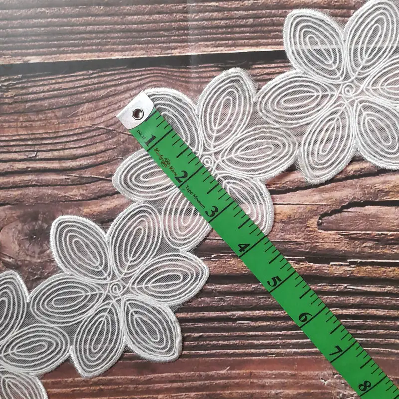 White Flower Cord Lace Trim, 4 inch width, 1 yard length