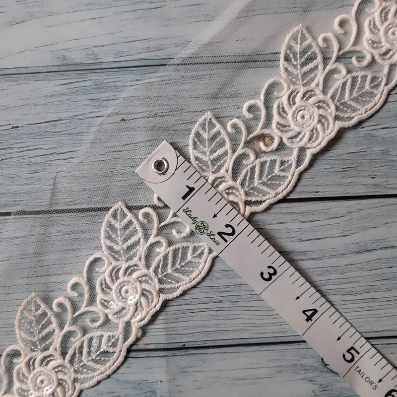 White Flower Net Base Lace with Sequin All Over, 2 inch wide, 1 Yard length
